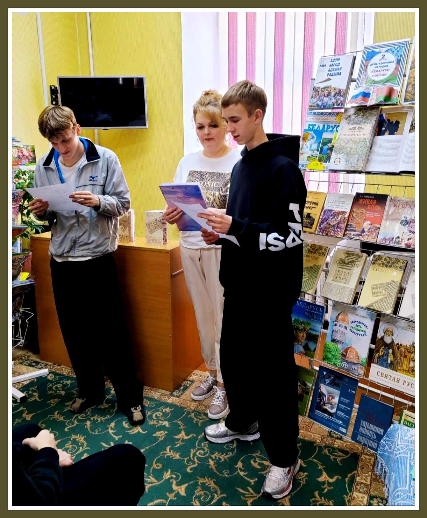 Мы говорили об истории праздника, об особой странице в истории наших государств – Великой Отечественной войне. О том, что Беларусь первой встретила фашистские войска, оказалась форпостом Советского Союза, а Брестская крепость стала символом мужества, героической стойкости, доблести и чести. Именно поэтому наши государства – это братья по крови, братья по боли, плечом к плечу проложившие путь к Великой Победе. Память об этом хранится в том числе и в книгах, с которыми мы познакомили ребят. А ещё мы посвятили героям стихи на русском языке и беларускай мове.