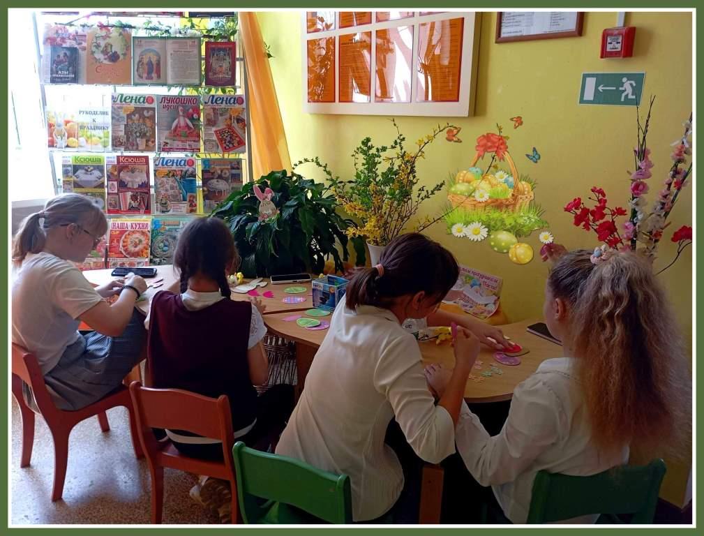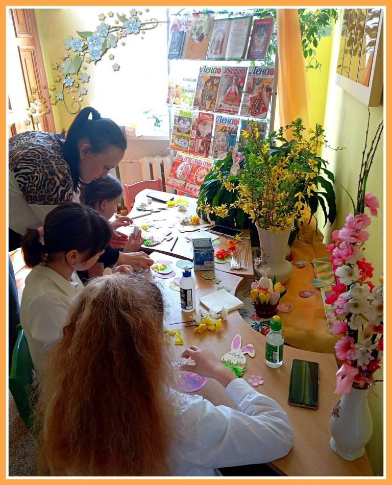 Сегодня в библиотеке мы организовали творческую беседку “Мир пасхального декора”.