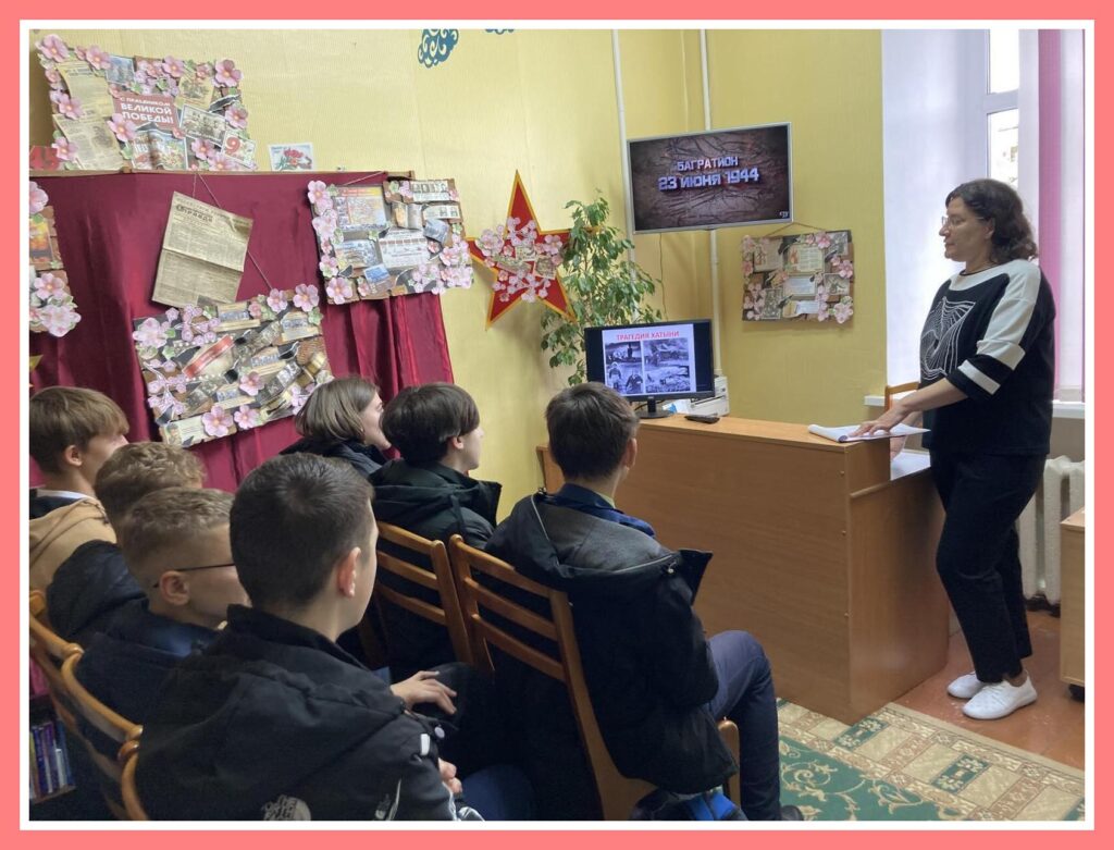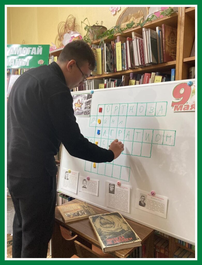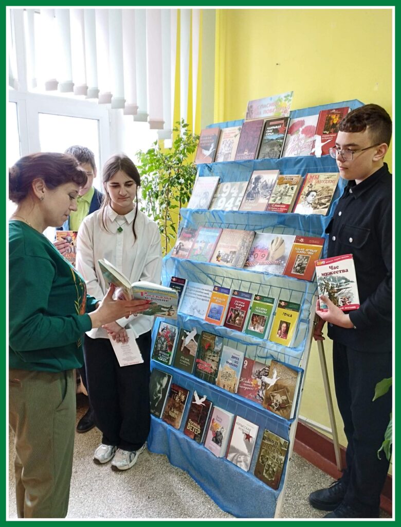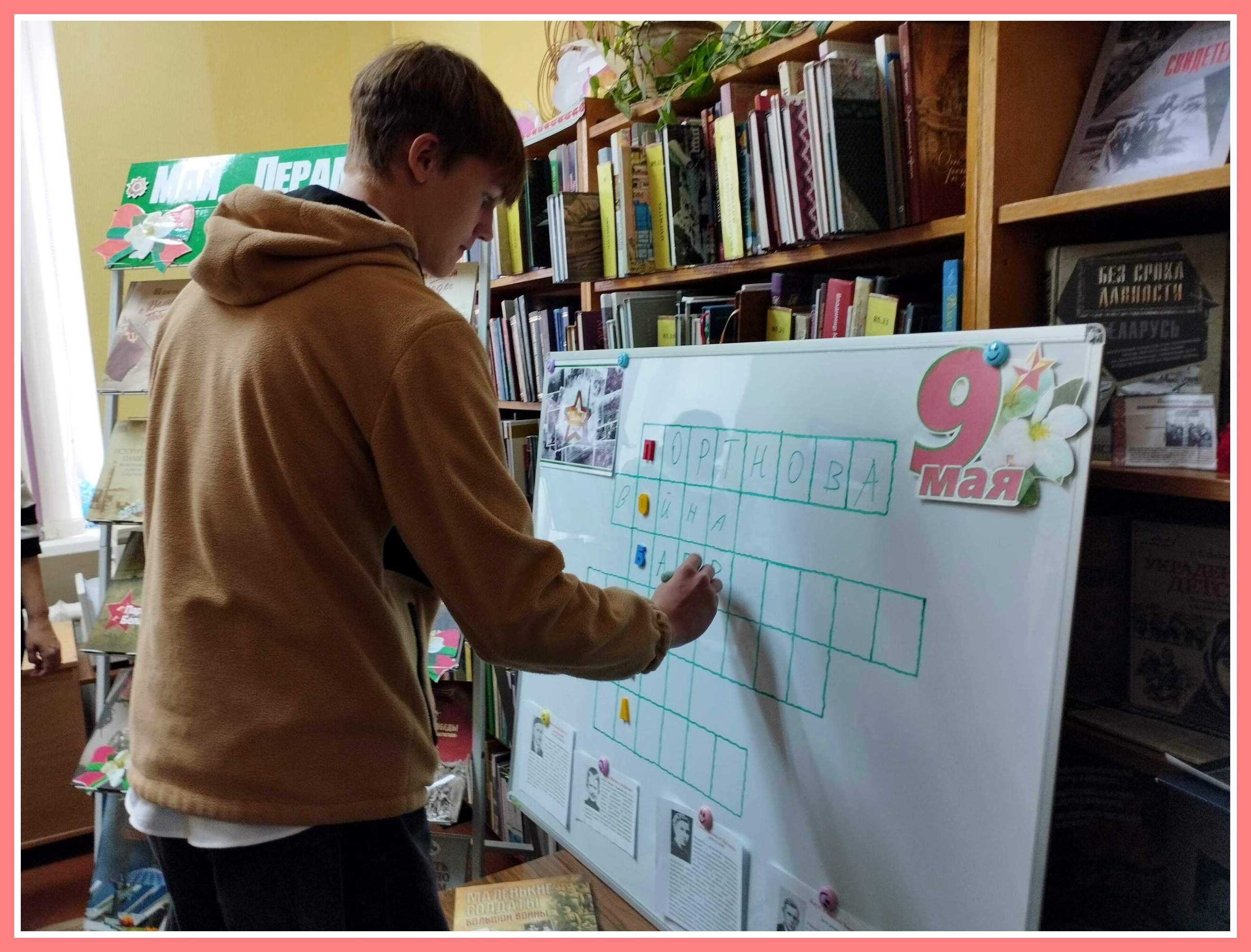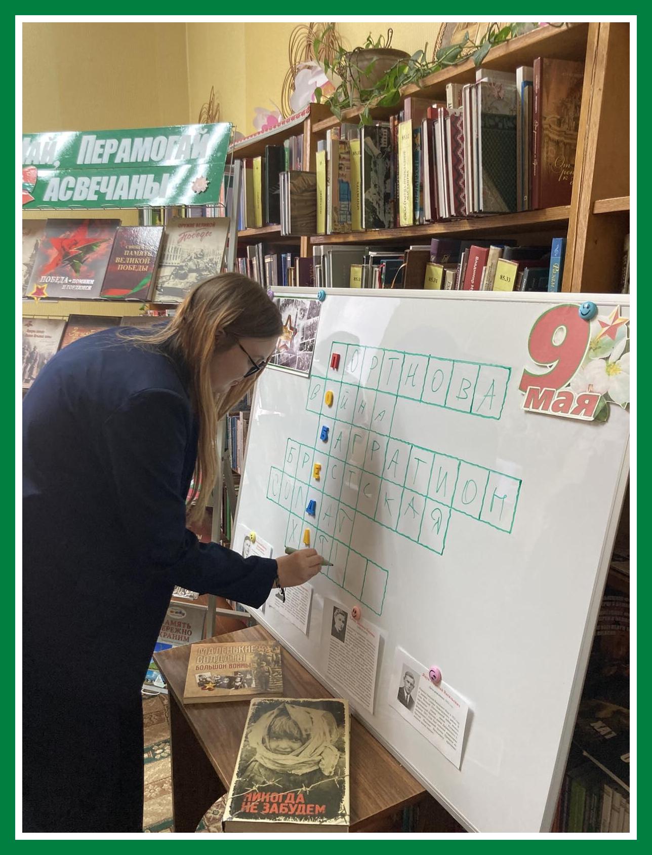 Для наведвальнікаў бібліятэкі дэманстраваліся кнігаметры памяці «Вясна на старонках Перамогі», у якіх расказвалася чаму вайна атрымала назву Айчыннай, як сыходзілі на фронт бацькі, браты, сыны, як у смяротнай сутычцы з ворагам загартавалася і мацнела ў салдат любоў да роднай зямлі, рашучасць абараняць Радзіму.