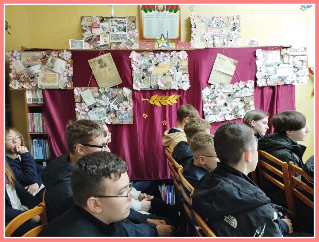 Сёння ў бібліятэцы сямейнага чытання прайшла гістарычна-патрыятычная студыя «Навечна ў памяці той слаўны 45-ты!». Нашы чытачы яшчэ раз ўпэўніліся, якой цяжкай цаною была здабыта Вялікая Перамога. Пачулі пра Вялікі подзвіг беларускага народа ў гады Вялікай Айчыннай вайны. Успомнілі, што разам з дарослымі ў партызанскіх атрадах, у варожым падполлі змагаліся юныя героі. Многія школьнікі занялі працоўныя месцы бацькоў, якія пайшлі на фронт, даглядалі параненых у шпіталях, працавалі на калгасных палях.
