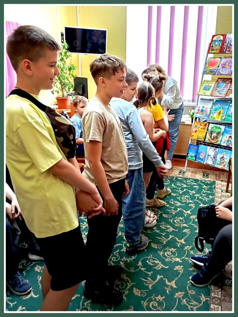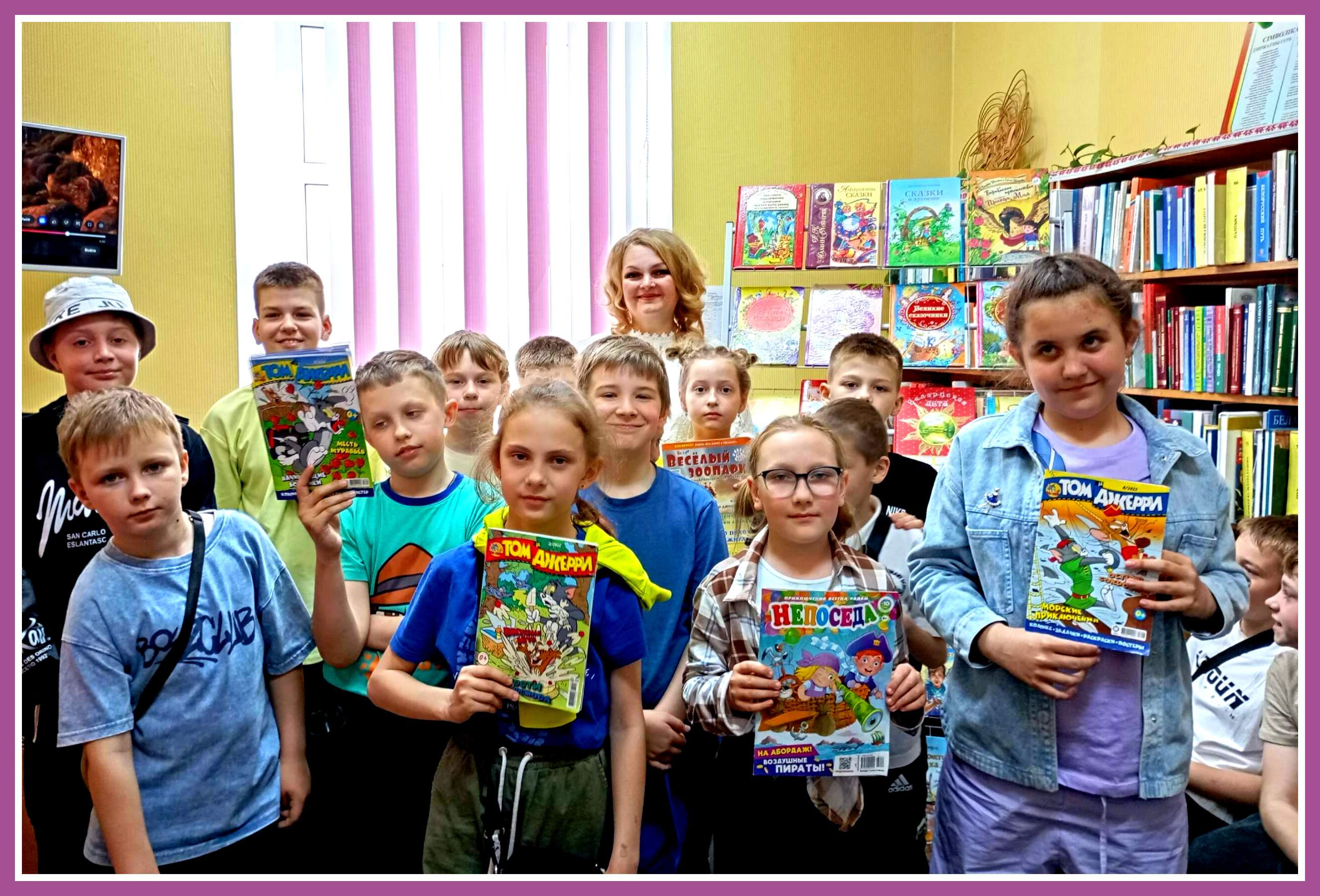 Лето набирает обороты, и сегодня к нам в гости пришли наши давние друзья — учащиеся 3-4 классов из оздоровительного лагеря «Наследники традиций», который работает в Средней школе №3 им. В.Г.Гахович . Ребята знают, что каникулы с библиотекой — это всегда весело, познавательно и интересно! Здесь много интересных книг и самых ярких детских журналов, а ещё можно окунуться в весёлый мир развлечений! Сегодня вместе с мальчишками и девчонками мы  прокатились на весёлой, полной увлекательных игр и конкурсов, библиокарусели. Для участия в математических, поэтических, песенных, кулинарных и многих других конкурсах и играх ребятам понадобилась смекалка, сообразительность и предельное внимание. Но со всеми заданиями наши друзья, конечно же, справились!