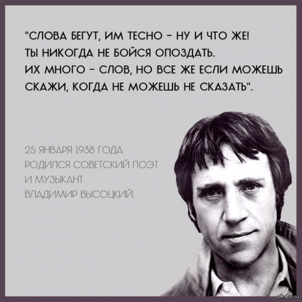 Он кумир миллионов. Был безмерно талантлив, все, за что брался, делал честно, открыто, с душой. Для новых стихотворений или песен ему не приходилось подбирать слова. Они просились на бумагу сами, минуя внутреннюю цензуру или другие барьеры. Строки шли, как и было уготовано судьбой: «Я не люблю, когда наполовину // Или когда прервали разговор. // Я не люблю, когда стреляют в спину, // Я также против выстрелов в упор».