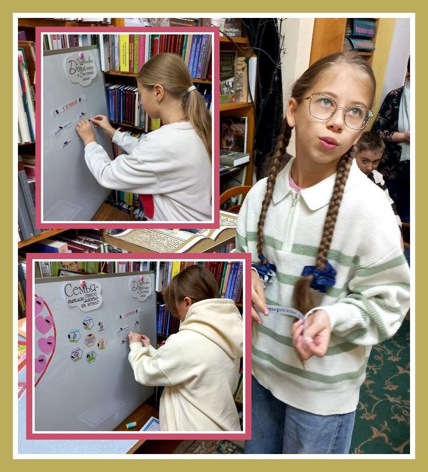 Во время мероприятия ребята размышляли о том, что такое счастливая семья, дали определение понятию «семейные ценности», поговорили об обязанностях человека в семье как ячейке общества, определили главные заповеди счастливой семьи. А в завершение нашей встречи своими добрыми словами и тёплыми пожеланиями «оживили» сердце счастливой семьи💗 и, конечно, познакомились с хорошими книгами для семейного чтения.