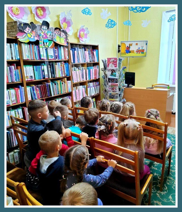Дети познакомились с ярким миром красивых, интересных книг и журналов. Узнали, что живут они в специальном доме, который называется библиотека. Книги здесь заботливо хранят, оберегают, чтобы они могли как можно дольше служить людям. Библиотекари рассказали мальчишкам и девчонкам о правилах поведения в библиотеке, познакомили с правилами обращения с книгой. Вместе с тем, будущие школьники узнали, что у каждой книги есть свое место на книжном стеллаже, что стоят они в определённом порядке, а ещё — что их можно брать домой и читать в читальном зале библиотеки. И, конечно же, в заключение нашей встречи, все вместе посмотрели познавательный мультфильм о библиотеке…