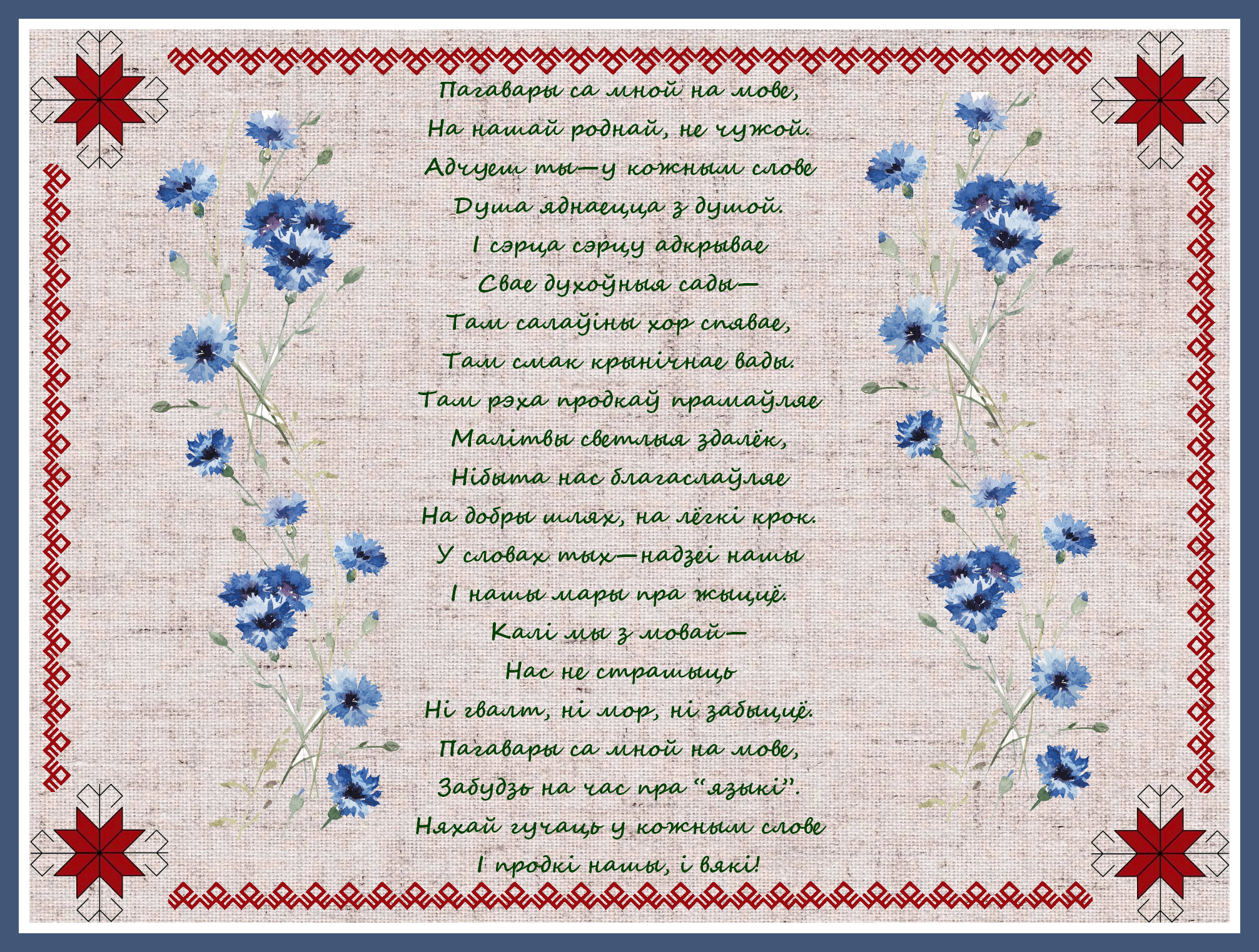 Мова… Наша родная мова… Колькі мілагучнасці, таемнасці ў гэтым слове. Залатыя лісцікі на дрэвах, кожная птушка, кожная кветка і, канешне, чалавек — усе маюць сваю мову.