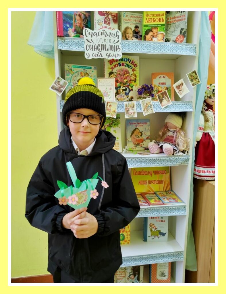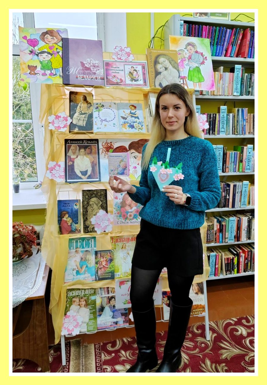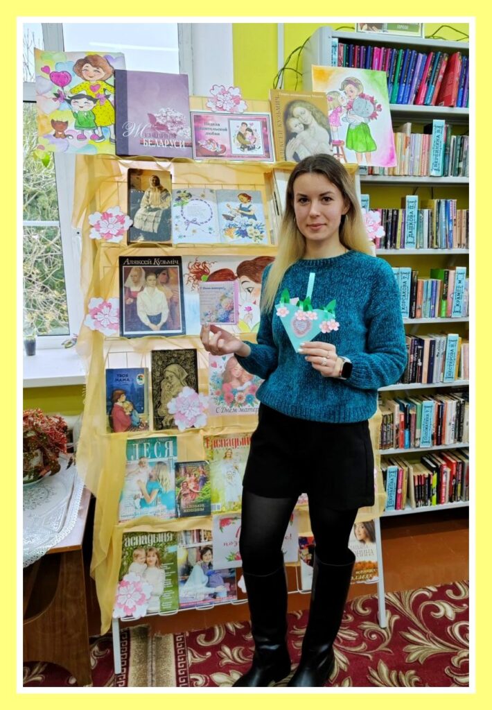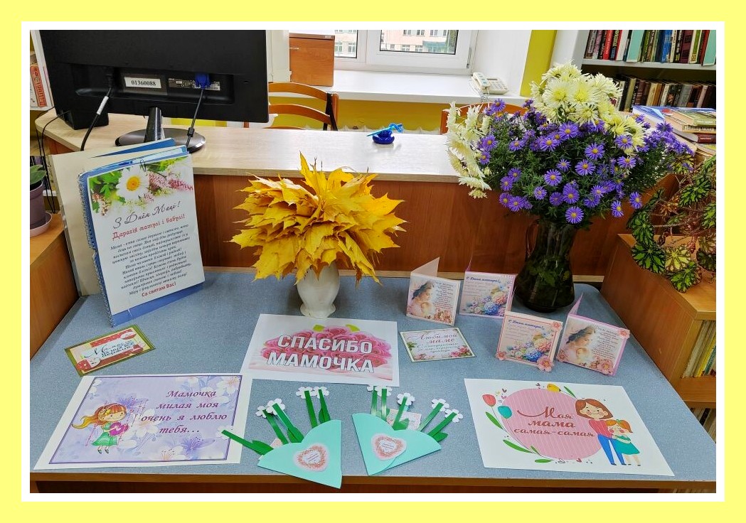 К мероприятию была оформлена выставка-инсталляция «С любовью о маме», на которой представлены не только книги о маме, но и добрые пожелания в адрес женщины – матери, а также детские рисунки «Галерея милых мам».